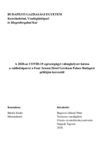 A szakdolgozatban a 2020-as COVID-19 egészségügyi válsághelyzetnek a magyar szállodaiparra vonatkozó hatásáról olvashatnak. Kiemeleten a Four Seasons Hotel Gresham Palace Budapest költségvetésének és krízismenedzsmenti döntéseinek példáján keresztül.