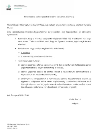 Csalár Rita (2021) Automatizált folyamatok bemutatása a Schöck Hungária Kft.-nél. Külkereskedelmi Kar.