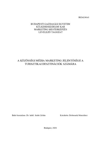 Dobronoki Mercédesz (2021) A közösségi média marketing jelentősége a turisztikai desztinációk számára. Külkereskedelmi Kar.