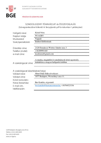 Kézdi Nóra (2020) A munka, magánélet és tanulmányok közti egyensúly kialakítása a magyar hallgatók körében. Pénzügyi és Számviteli Kar.