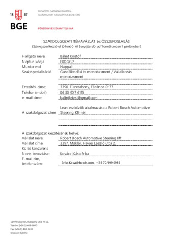 Bálint Kristóf (2020) Lean eszközök alkalmazása a Robert Bosch Automotive Steering Kft-nél. Pénzügyi és Számviteli Kar.
