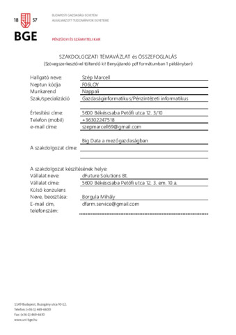 Szép Marcell (2020) Big Data a mezőgazdaságban. Pénzügyi és Számviteli Kar.
