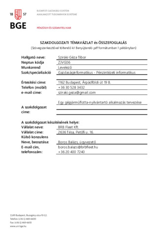 Sziráki Géza Tibor (2020) Egy gépjárműflotta-nyilvántartó alkalmazás tervezése. Pénzügyi és Számviteli Kar.