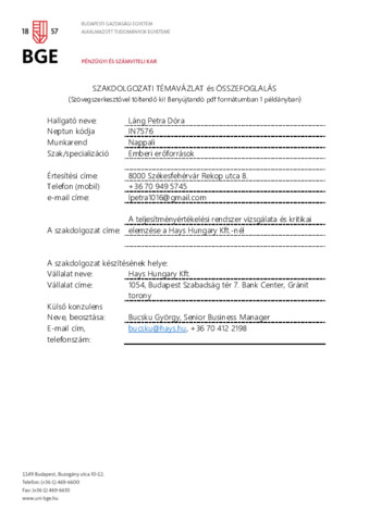 Láng Petra Dóra (2020) A teljesítményértékelési rendszer vizsgálata és kritikai elemzése a Hays Hungary Kft.-nél. Pénzügyi és Számviteli Kar.