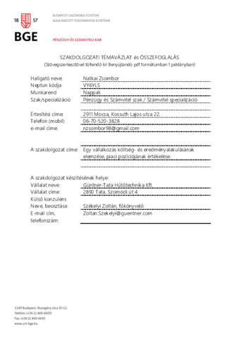 Natkai Zsombor (2020) Egy vállalkozás költség- és eredményalakulásának elemzése, piaci pozíciójának értékelése. Pénzügyi és Számviteli Kar.