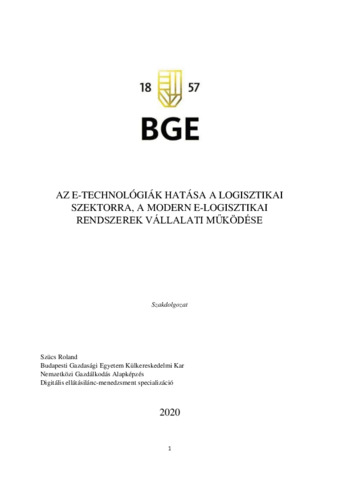 Szücs Roland (2021) Az E-technológiák hatása a logisztikai szektorra, a modern E-logisztikai rendszerek vállalati működése. Külkereskedelmi Kar.