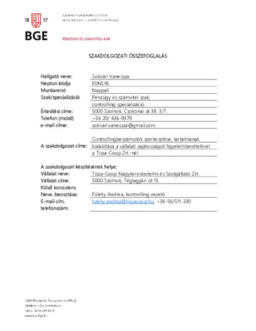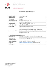 Sokvári Vanessza (2022) Controlling beszámolók szerkesztése, tartalmának kialakítása a Tisza-Coop Zrt. gyakorlatában. Pénzügyi és Számviteli Kar.