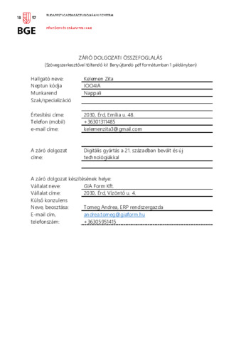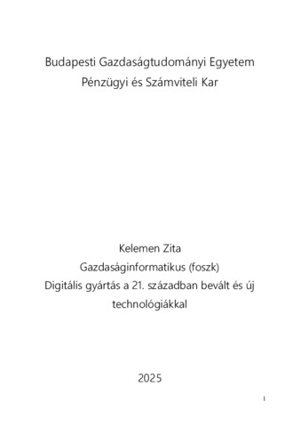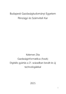Kelemen Zita (2025) Digitális gyártás a 21. században bevált és új technológiákkal. Pénzügyi és Számviteli Kar. (Kéziratban)