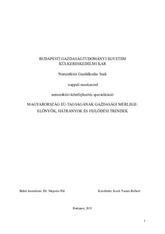 Koch Tamás Róbert (2025) Magyarország EU-tagságának gazdasági mérlege: Előnyök, hátrányok és fejlődési trendek. Külkereskedelmi Kar.