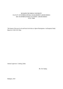 Zou Seping (2025) The Impact of Income Level and Social Activities on Sports Participation: An Empirical Study Based on CGSS 2021 Data. Külkereskedelmi Kar.