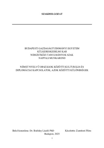 Zsemberi Flóra (2025) A német nyelvű országok közötti kulturális és diplomáciai kapcsolatok, azok közötti különbségek. Külkereskedelmi Kar.