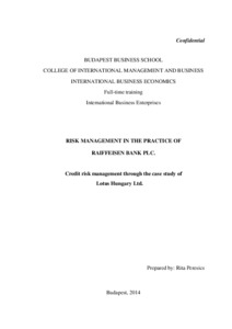 Peresics Rita (2014) Risk management in the practice of Raiffeisen Bank PLC. : Credit risk management through the case study of Lotus Hungary Ltd. Külkereskedelmi Kar.